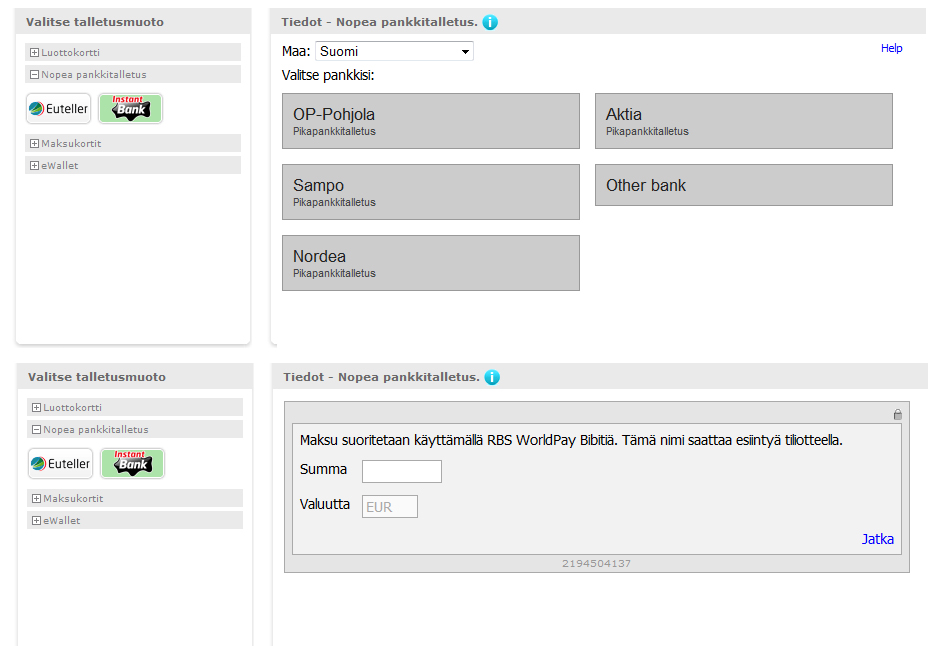| Deposit Options to Account | Bank Transfer: Nordea, Danske Bank, Commerce Bank, OKO Bank, Loans arranged Tapiola, S Bank, and the Bank of Aland |