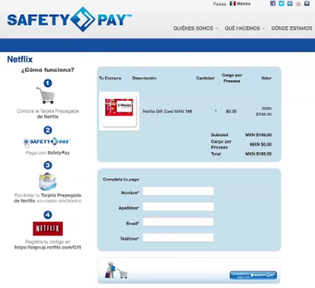| Security | SafetyPay offers a completely secure method of transferring funds |